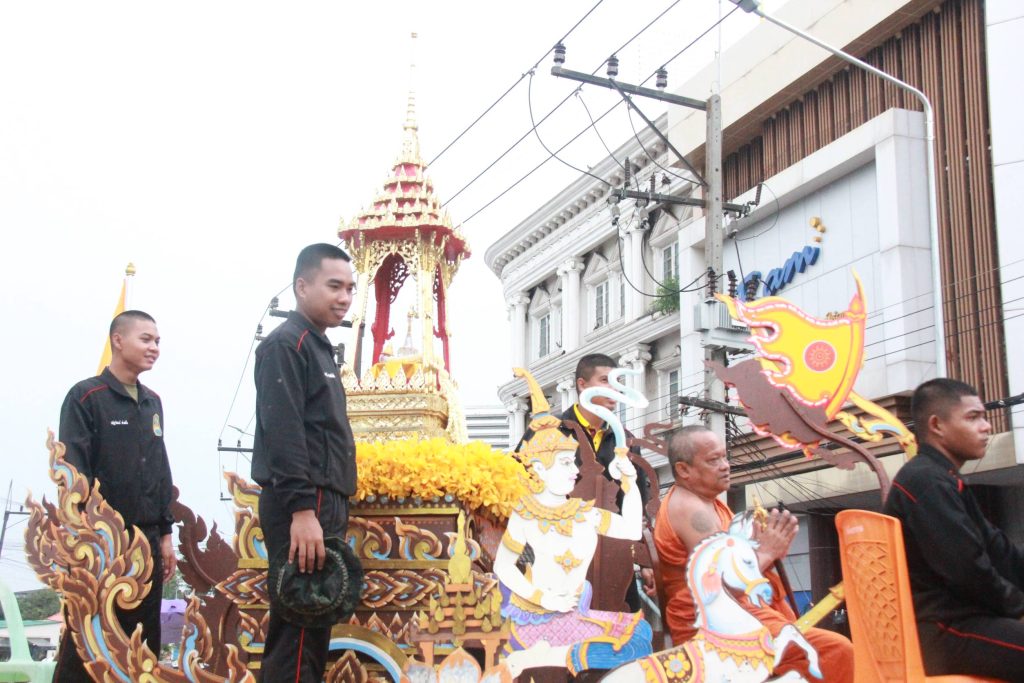 พุทธศาสนิกชนจังหวัดสุราษฎร์ธานีกว่าพันคน พร้อมใจร่วมพิธีอัญเชิญพระบรมสารีริกธาตุ .