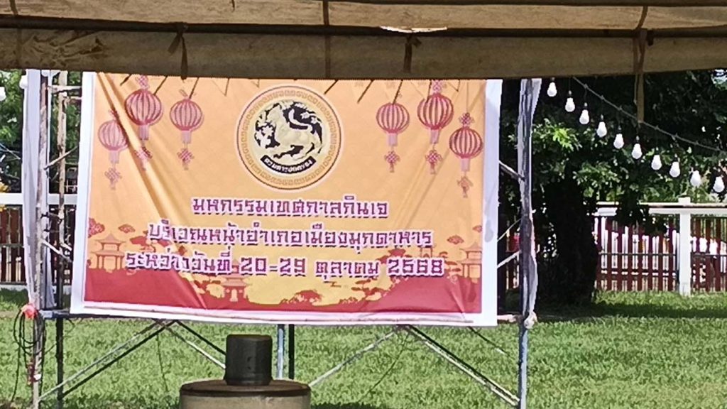 24 10 68 ที่บริเวณสนามหน้าที่ว่าการอำเภอเมืองมุกดาหาร นายชายสิทธิ์ สุวรรณโชติ นายอำเภอเมืองมุกดาหาร พร้อมด้วย นายสันติภาพ สอสุธรรม คณะกรรมการมูลนิธิวิสุทธิธรรม ได้จัดมหกรรมเทศกาลกินเจ รวม 9 วัน ระหว่างวันที่ 20 – 29 ตุลาคม 2568 มีร้านอาหารเจที่เข้าร่วมมหกรรมในครั้งนี้จำนวน 20 ร้านค้า โดยมีอาหารเจหลากหลายเมนู อาหารอร่อย และสะอาด มีไว้บริการประชาชน และขอเชิญชวนประชาชนแวะมาซื้ออาหารเจได้ทุกวัน