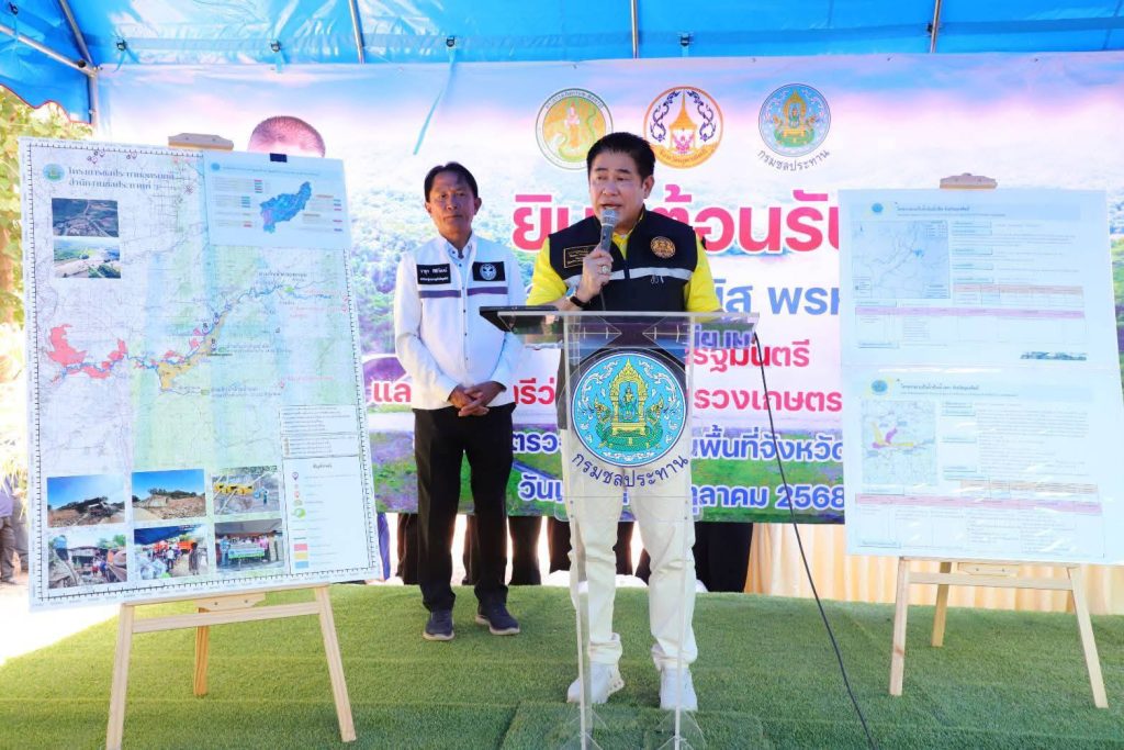 (25 ต.ค. 68) ร้อยเอก ธรรมนัส พรหมเผ่า รองนายกรัฐมนตรีและรัฐมนตรีว่าการกระทรวงเกษตรและสหกรณ์ ลงพื้นที่จังหวัดอุตรดิตถ์ รับฟังบรรยายสรุปความเสียหายของระบบชลประทาน ภายหลังพายุ “บัวลอย” พัดถล่มเมื่อปลายเดือนกันยายนที่ผ่านมา ส่งผลให้สะพานส่งน้ำคลองสายใหญ่ กม.14+200 ฝายคลองตรอน หมู่ที่ 15 ตำบลผักขวง อำเภอทองแสนขัน ความยาวกว่า 140 เมตร ถูกน้ำป่าจากห้วยคลองน้ำมืดพัดพังเสียหายจนไม่สามารถใช้งานได้