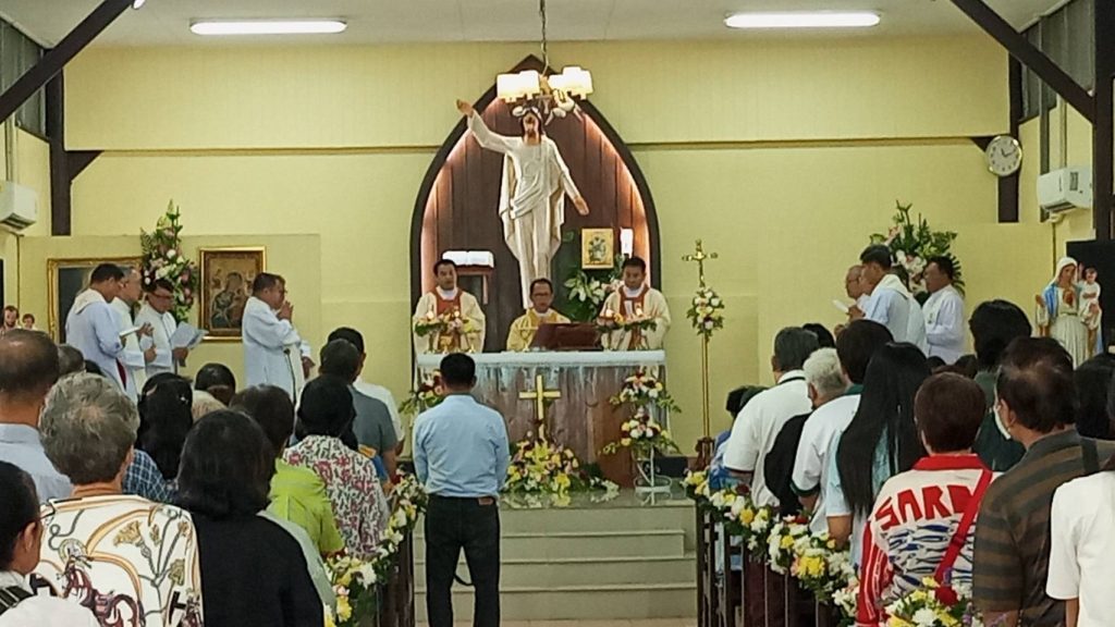 โดยได้รับเกียรติจาก บาทหลวงธรรมรัตน์ เรือนงาม อธิการบ้านเณรพระหฤทัยศรีราชา จังหวัดชลบุรี เป็นประธานประกอบพิธีมิสซาโอกาสพิเศษในครั้งนี้ มีคณะบาทหลวง นักบวชชาย-หญิง และสัตบุรุษทั้งใกล้และไกลจำนวนมากมาร่วมพิธี