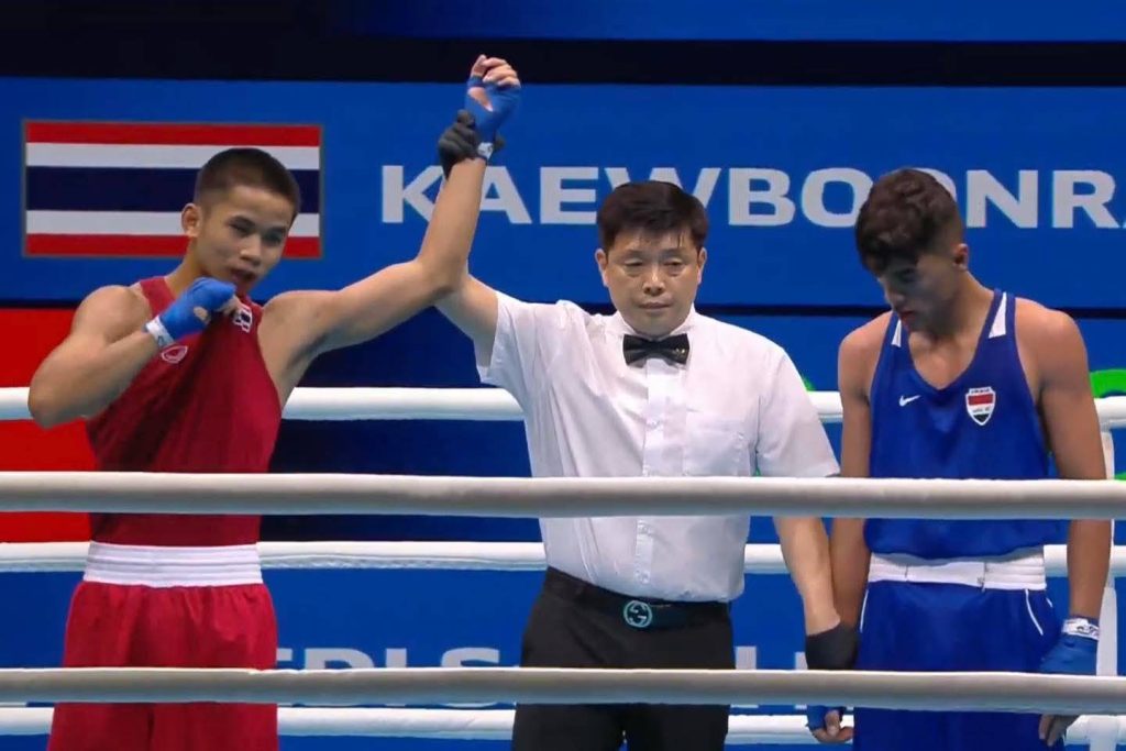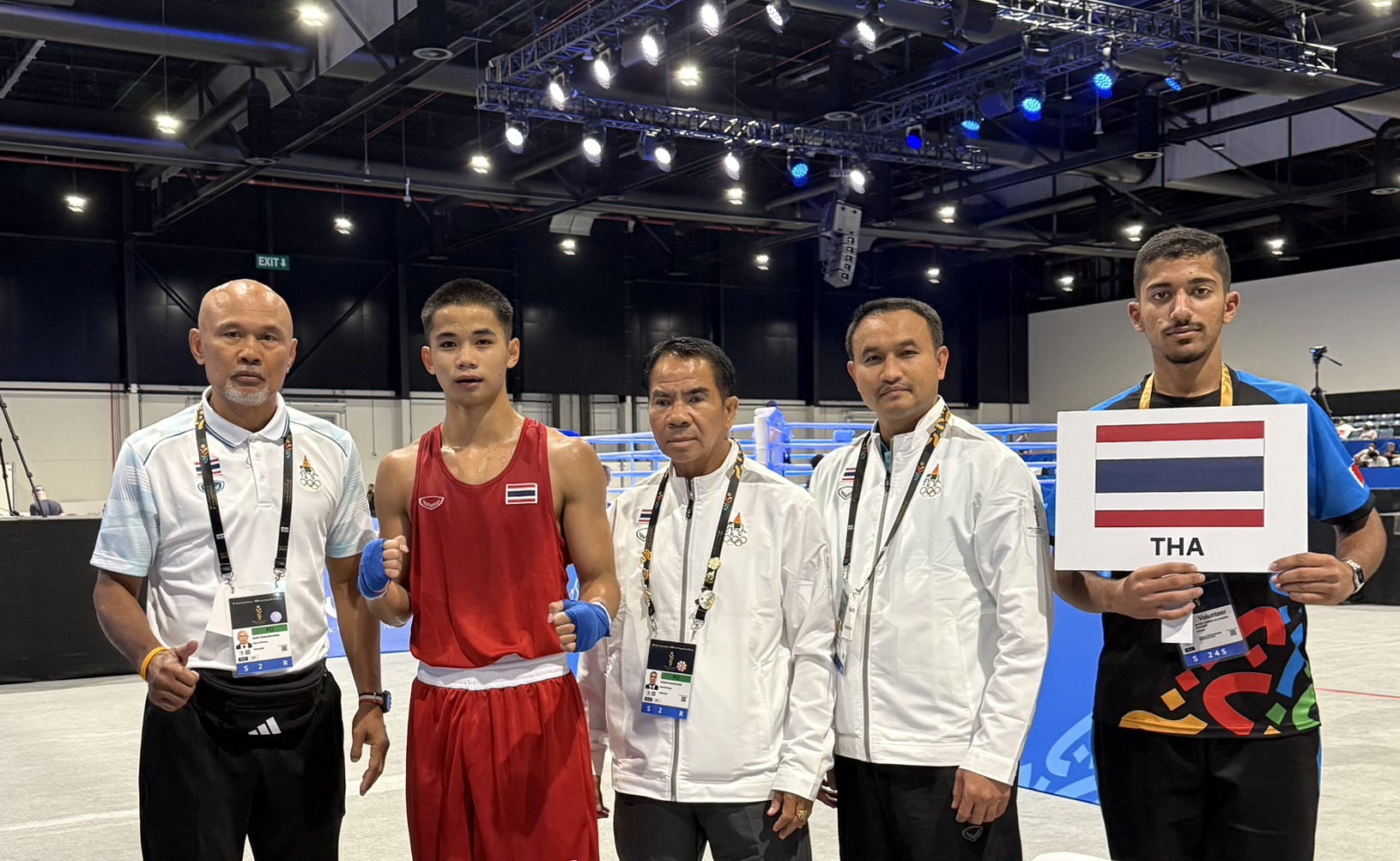 ฐิติพันธ์ คำแร่ นักชกเยาวชนทีมชาติไทยดีกรีเหรียญทองแดงยุวชน-เยาวชนชิงแชมป์ประเทศไทยปีล่าสุด เฉือน ชนะคะแนน อาลี อาซาน นักชกเยเมน 3-2 ในรุ่น50กก. ผ่านเข้ารอบชิงเหรียญทองแดงเช่นเดียวกับ รุ่น66กก.สันติ แก้วบุญเรือง เหรียญทองแดงชิงแชมป์ประเทศไทยปี68 ต้อนชนะ ซัดแฮร์ อัลซาดี้ นักชกอิรัก 5-0