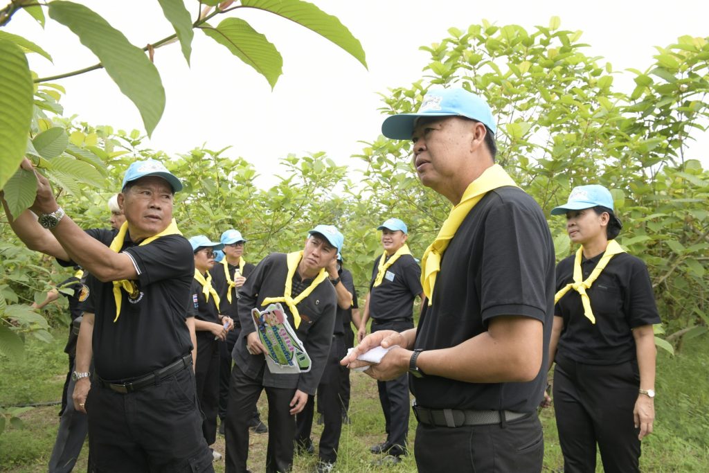 โดยนายสินชัย ทองมั่ง ประธานศูนย์เรียนรู้การพัฒนาคุณภาพชีวิตตามหลักทฤษฎีใหม่ ประยุกต์สู่ “โคก หนอง นา” พื้นที่แบบอารยเกษตร นำเยี่ยมชมพื้นที่ และบอกเล่าแนวทางการพัฒนาศูนย์เรียนรู้ฯ ให้เป็นศูนย์รวมทางจิตใจของชุมชน กิจกรรมการพัฒนา สร้างโอกาสให้แก่คนในชุมชน และการพัฒนาพื้นที่วัดให้เป็นศูนย์เรียนรู้เกษตรทฤษฎีใหม่ “โคกหนอง นา” ตามหลักปรัชญาของเศรษฐกิจพอเพียง ตลอดจนเยี่ยมชมฐานเรียนรู้ภายในศูนย์ฯ ประกอบด้วยฐานเรียนรู้ต่าง ๆ ในด้านการเกษตรตามหลักทฤษฎีใหม่ และศาสตร์พระราชา