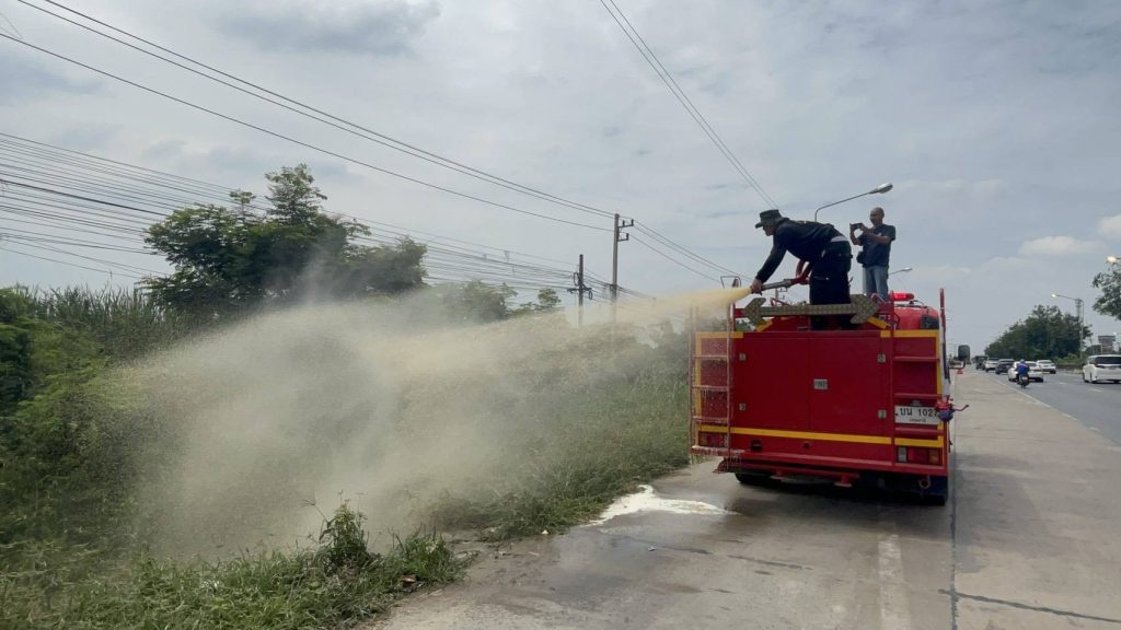 นายสุกฤษฏิ์ ผ่องคำพันธุ์ เลขานุการนายกเทศมนตรีเมืองบางคูวัด กล่าวว่า เบื้องต้นเทศบาลเมืองบางคูวัด โดยตามคำสั่งของท่านนายกเทศมนตรีบางคูวัด เราลงพื้นที่ตรวจสอบข้อเท็จจริง พบว่ามีร่องรอยการทิ้งสิ่งปฏิกูลลงไปจริง ๆ และมีการกระทำมาแล้วหลายครั้งจนเราต้อง ซึ่งพื้นที่บริเวณดังกล่าวอยู่ใน การดูแลของ หมวดทางหลวง เบื้องต้นเทศบาลเมืองบางคูวัด ได้ประสานงานกับหมวดทางหลวงไทรน้อยแล้ว ซึ่งทางทางหมวดทางหลวงเองก็แนะนำมาว่า ให้ดำเนินการด้วย พ.ร.บ. รักษาความสะอาด 2535 ซึ่งทางเทศบาลบางคูวัดก็ไม่ได้นิ่งนอนใจ เราก็จะประสานงานกับนิติกรเพื่อศึกษาความเป็นไปได้ของเรื่องกฎหมาย เบื้องต้นในเรื่องของกลิ่น เราก็ประสานงานไปทาง หน่วยงานที่เราสามารถมีขอบเขตในการที่จะเข้ามาช่วยเหลือได้ เราจะเอารถน้ำผสมอีเอ็มชีวภาพมาฉีด แล้วก็เป็นน้ำหมักเพื่อเจือจางกลิ่น บรรเทาผลกระทบเรื่องกลิ่นก่อน ให้ประชาชนพี่น้องประชาชนที่อยู่แถวนี้ได้มีความเดือดร้อนเรื่องกลิ่นให้น้อยลงไปก่อน