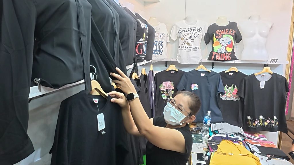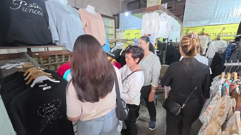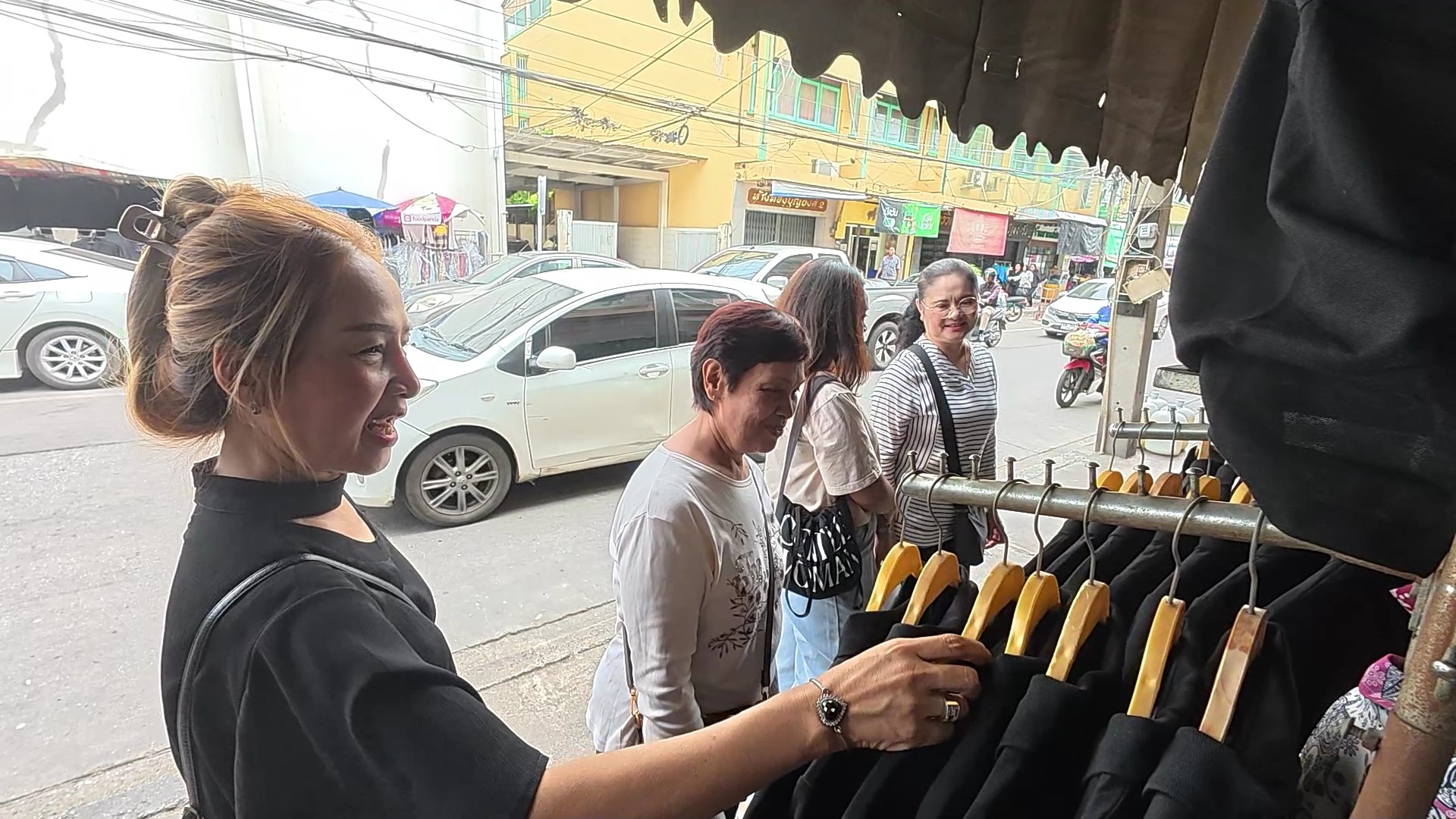 คุณครูนวล ครูเกษียณ ลูกค้าที่เข้ามาเลือกซื้อเสื้อผ้า เปิดเผยว่า เมื่อวานได้ไปเลือกซื้อเสื้อผ้าที่ตลาดอื่นมาในราคา 280 เป็นเสื้อแขนยาวสีขาว ก่อนจะนำมาใส่ในวันนี้ ขณะเดินอยู่ได้ยกมือขึ้น เสื้อที่สวมใสได้ขาดช่วงรักแร้ จึงต้องเดินเลือกหาซื้อเสื้อใหม่ในตลาดแห่งนี้ ก่อนจะมาเจอเสื้อที่อยู่ในหุ่นหน้าร้าน เป็นแบบเดียวกันแต่คนละสี พอสอบถามแม่ค้าแจ้งว่าลดราคาจากปกติให้ เหลือ 220 บาท ตนจึงลองเปลี่ยนดูและซื้อสวมใส่แทนเสื้อที่ขาด