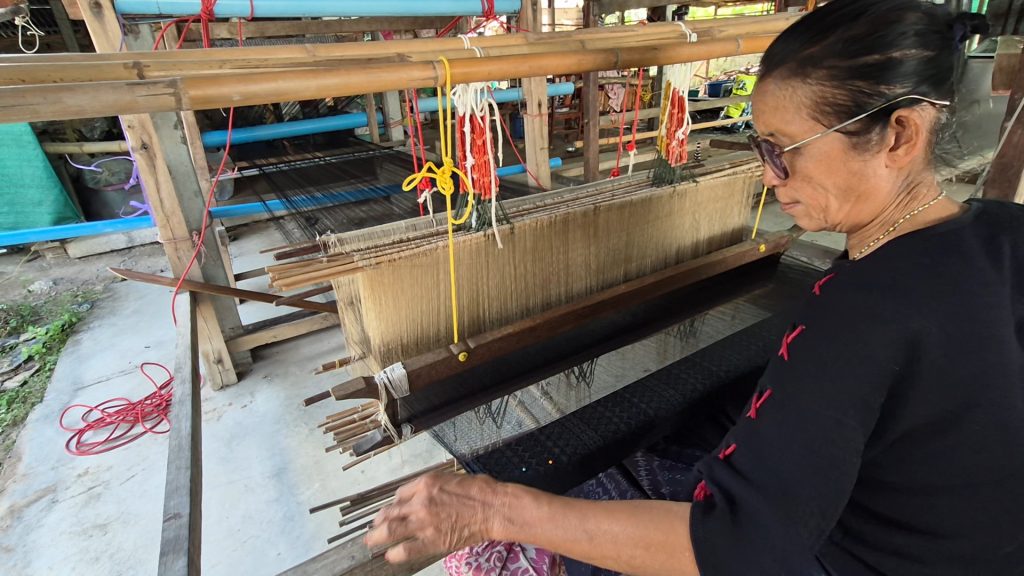 เมื่อวันที่ 27 ตุลาคม 2568 ผู้สื่อข่าวเดินทางไปที่วิสาหกิจชุมชนกลุ่มทอผ้า@ไหมลายขิดบ้านศรีชมชื่น เลขที่ 167 หมู่ 3 ต.หนองอ้อ อ.หนองวัวซอ จ.อุดรธานี พบกับนางลานี โสดาพรม อายุ 70 ปี ประธานกลุ่ม ช่างทอผ้าไหมลายขิด ศูนย์ศิลปาชีพ กำลังนั่งทอผ้าไหมลายขิดสีดำ ซึ่งมีร้านจำหน่ายผ้าไหมสั่งทอไม่จำกัดจำนวน ซึ่งมีสมาชิกกลุ่มมาทอช่วย โดยในศูนย์ได้ตั้งรูป สมเด็จพระนางเจ้าสิริกิติ์พระบรมราชินีนาถ พระราชชนนีพันปีหลวง ทรงสวมสร้อยคอทองคำให้นางลานี หลังประกวดผ้าไหมลายขิดได้ที่ 2 ที่พระตำหนักภูพานราชนิเวศน์ จ.สกลนคร